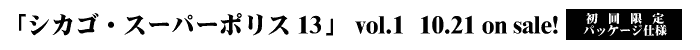 ![]() ■C.S.Pの基礎知識 世界観 「シカゴ・スーパーポリス13」の舞台となるのは1920年代のアメリカである。本作には「銀河漂流バイファム」オリジナルシリーズに出演したキャラが基本的な性格設定を変えることなく総登場しており、「バイファム」を知るファンなら誰もが親しめる内容となっている。また、オリジナルシリーズの善悪設定とは無関係に、カチュアを除いたすべてのククトニアンがククトファミリー側・その他のキャラクターがシカゴ分署側と、単純明快な配役となっている点も特徴的である。 なお、13人を始めとする登場人物は、バイファム出演時の年齢に一律13歳が加算された年齢設定となっており、ハードボイルドな演出にも違和感なく対応できるよう工夫されている。これらの設定は、本作の続篇である「シカゴ・アーバンポリス24」にも忠実に受け継がれた。 予告篇との関係 「ケイトの記憶・涙の奪回作戦」に収録された本作の予告篇は、本篇全26話から抜粋された名シーンから構成されている。主なシーンの出典は以下の通り。