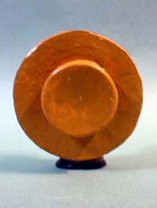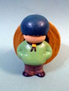 初の立体です。製作期間は約2週間…だったんですが、そのほとんどが乾燥待ち時間だったり材料の買い出し待ち時間だったので、実際はもっと短かったかも。原型はフォルモとポリパテで制作→途中からはキャストに置き換えました。色はプラカラーではなくアクリル絵具を使用(←普通はしない方法なので、マネしちゃダメよ)。 ちなみに顔はなんにも描いてないんですけど、その割にはそれっぽく見えますね。他のキャラだったらこうはいかない(笑)。 |