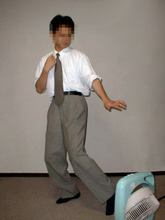 さて、というわけで、実際にサラリーマンにこのポーズを取ってもらった。