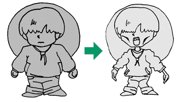 いいところに気が付いたね。これには2つの学説があるんだよ。まずひとつは、アニメだからリアルな表現を避けたという説だ。登場人物の体積がいきなり47.3%も減ってしまったら、シーンの前後で別人のようになってしまうからね。ちなみにリアルに描くと以下のイラストのようになると考えられているんだよ。 |