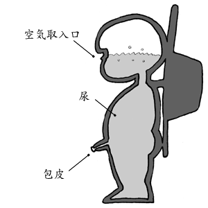 もうひとつの説は、ジミーの体がタンクのような構造になっていて、内部に尿を蓄積していただけという説だ。断面図を見てみようね。 |